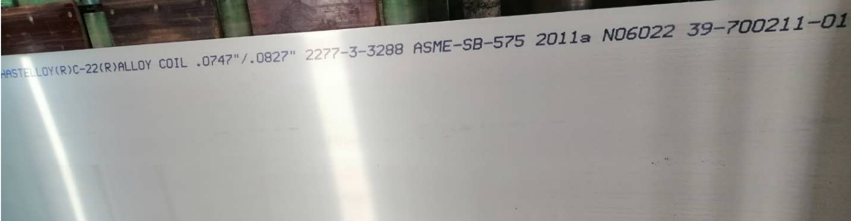 碳(C)≤0.015,錳(Mn)≤0.50,鎳(Ni)≥56,硅(Si)≤0.08,釩(V)≤0.35,硫(S)≤0.02,鉻(Cr)20.0~22.5,鐵(Fe)2.0~6.0,鉬(Mo)12.5~14.5,鎢(W)2.5~3.5,鈷(Co) ≤2.5